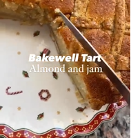 Bakewell tart, a thin crispy sweet crust filled with an almond paste and a layer of jam. Super delicious, easy to make and looks super impressive.