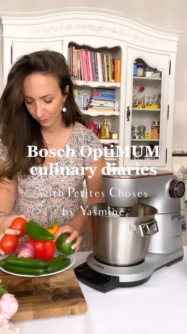 Summer is here and a good chilled gazpacho soup is a meal I crave during those hot sticky days! You can adapt the recipe to whatever herbs and veggies you have at home, but start with good, ripe tomatoes, small sweet cucumbers and mild capsicum peppers. All you need is a strong blender such as the OptiMUM Kitchen Machine from @boschhomegulf. I love the glass heat proof blender as I add boiling water to my vegetables and that avoids me peeling them! For the garnish, I also used the slicer of the machine, super easy to attach thanks to a smart color coding, and I got some crunchy cucumber croutons that I added along with chili paste on top of my chilled, flavorful gazpacho soup! Yum. Recipe below, will you try making it? #BoschHomeAppliances#collab#recipe#gazpacho#CookLikeABosch#OptiMUM@boschhomegulf