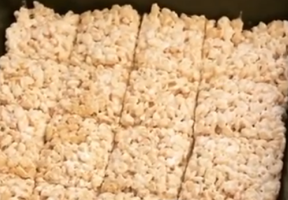 Add the 6 cups of rice crispies and keep stirring on low fire until everything is well combined.